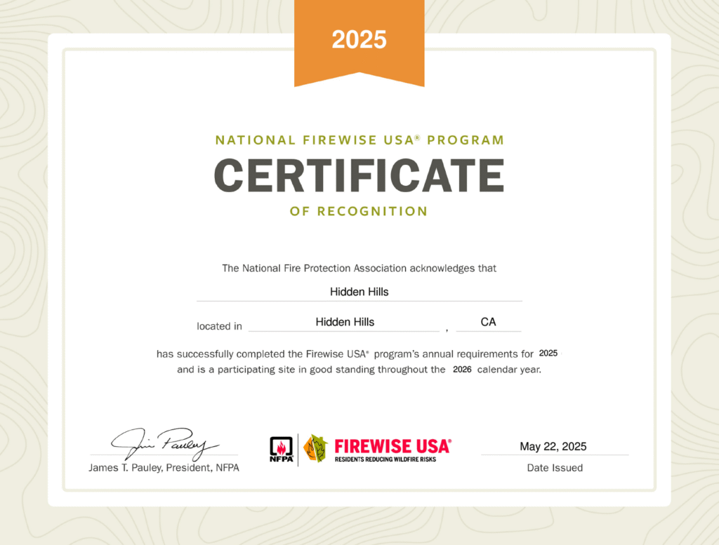Hidden Hills Firewise is a recognized Firewise Community by Firewise USA®.